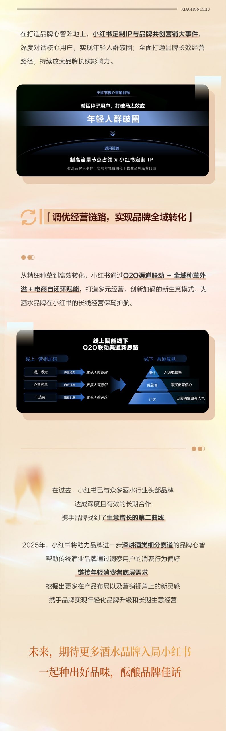 其中,小红书也在糖酒会现场高光亮相并同期举办了「新风·醴宴」小红书商业酒水行业尊享会,为酒水行业下多元赛道的快速发展注入新动能,带来了多维度的趋势洞察以及科学有效的平台经营方法论,引发众多酒水品牌关于未来经营链路的深刻思考。