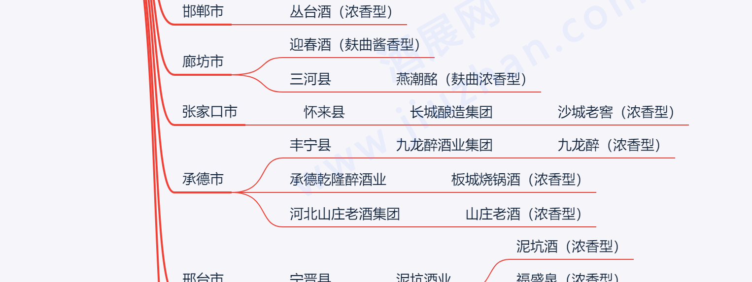 ?其他:五姑春酒、滴流酒、塞罕坝、泥坑、龙潭大曲、鹿全春、清香大曲、冀峰酒、热河大曲、甘陵春酒、燕南春。