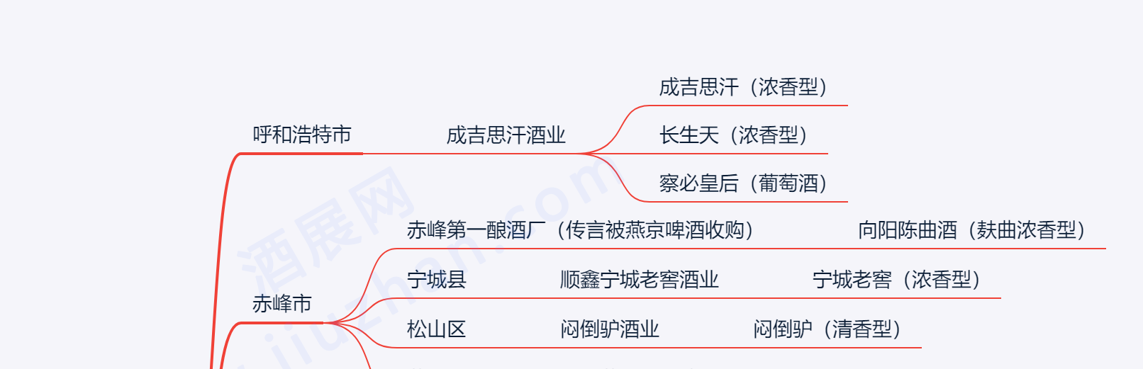 ?其他:青城曲酒、草原白酒、吊桥特曲、长城、昭君、仙境大曲、红云大曲、蟠龙特液、丰镇特曲、腾格尔酒。