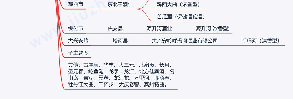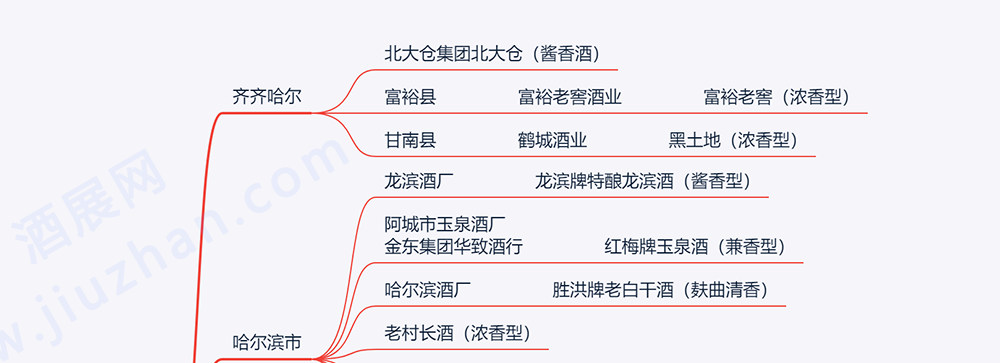 ?其他:古崖居、华丰、大三元、北泉贡、长河、圣元春、鲶鱼沟、龙泉、龙江、北方佳宾酒、名山岛、青宾、黑老、龙江龙、万里河、鹿源春、牡丹江大曲、千杯少、大庆老窖、宾州特曲。