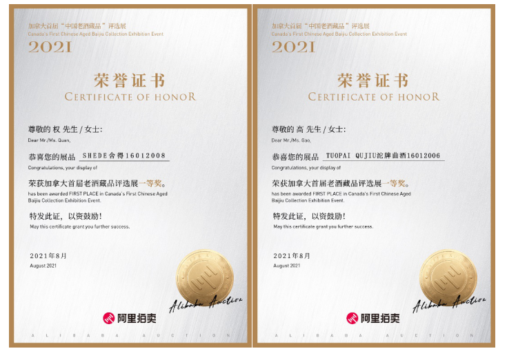 舍得酒、沱牌曲酒斩获加拿大“中国老酒藏品”一等奖