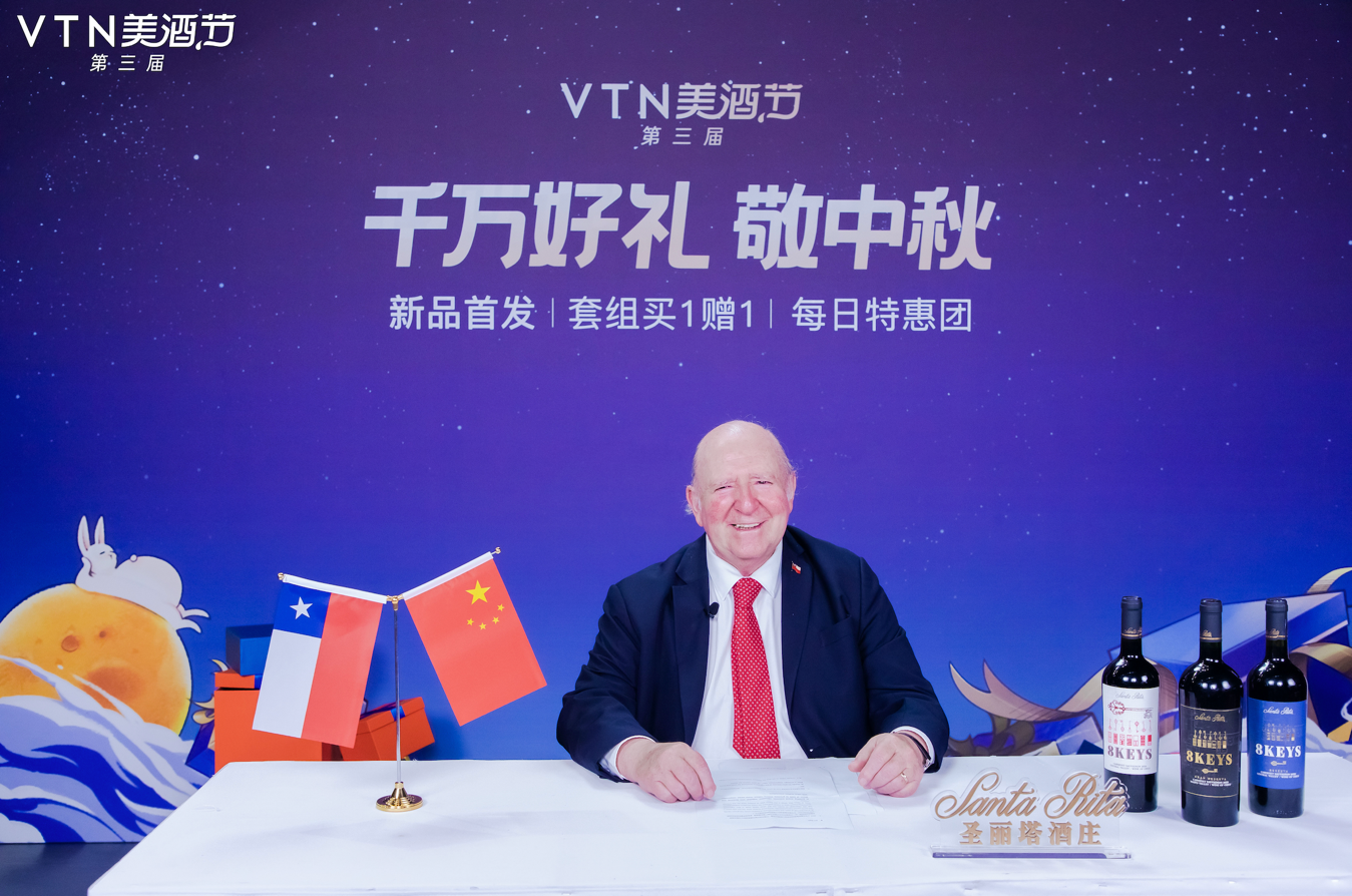 在直播现场,智利葡萄酒协会亚太区总监Nicolai Samsing先生为圣丽塔酒庄和VTN的战略合作送上了美好的祝福。