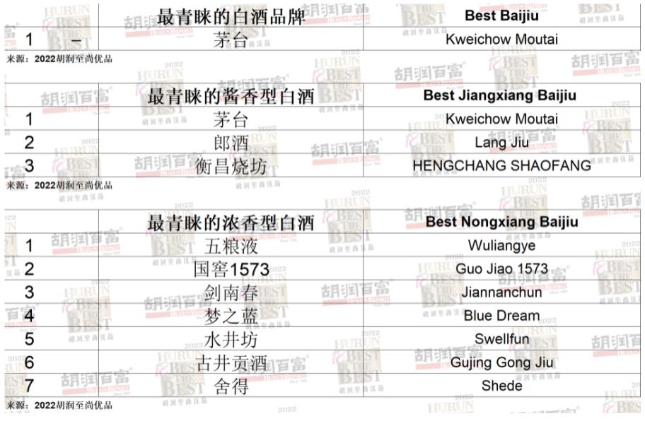 白酒方面,茅台以绝对优势继续赢得最受青睐白酒品牌,也位列最青睐的酱香型白酒品牌第一名,郎酒和衡昌烧坊分别排在最青睐的酱香型白酒品牌第二和第三名。五粮液荣登最青睐的浓香型白酒品牌第一名,国窖1573和剑南春排在第二和第三名。
