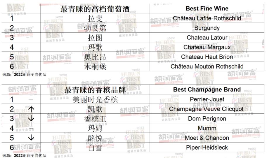 拉斐荣获最青睐的高档葡萄酒品牌第一名,勃艮第和拉图分别排在第二和第三名。美丽时光香槟蝉联最青睐的香槟品牌第一名,凯歌和香槟王分别排在第二和第三名。