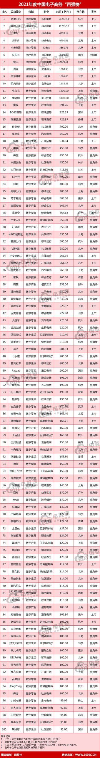 《2021年度中国电子商务“百强榜”》完整榜单如下: