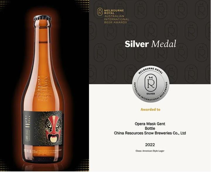 雪花脸谱系列啤酒(花脸),获澳大利亚国际啤酒大奖赛美式拉格组银奖。