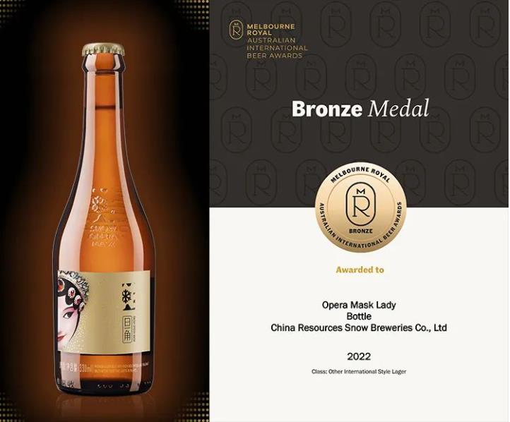 雪花脸谱系列啤酒(旦角),获澳大利亚国际啤酒大奖赛国际拉格组铜奖。