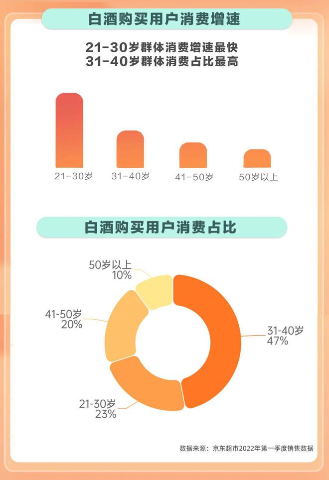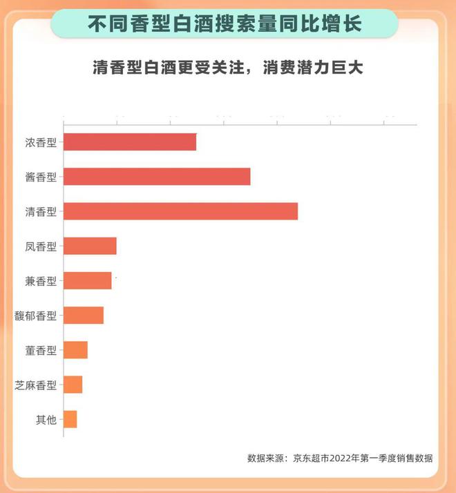 6月10日,京东超市发布了《2022 年一季度白酒消费趋势报告》(以下简称《报告》)。《报告》 表示,近年来白酒在京东超市销量持续高速增长,产品呈现五大消费趋势,人群、地域消费出现三大特征。