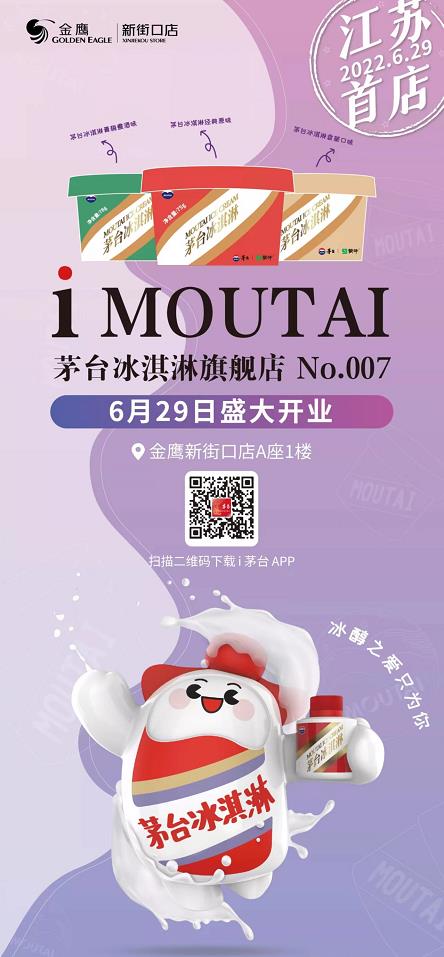 继5月19日茅台国际大酒店首家茅台冰激凌旗舰店正式营业、5月29日贵阳茅台冰淇淋旗舰店开业之后,茅台冰淇淋旗舰店将登陆江苏南京。6月15日,金鹰新街口店官微消息,茅台冰淇淋旗舰店NO.007号店将于6月29日在金鹰新街口A座1楼正式开业。