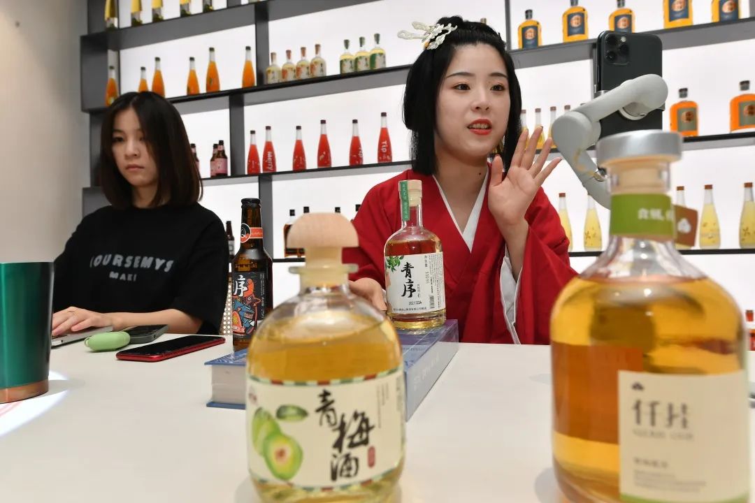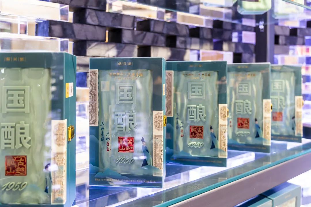在慢酒馆一楼,分别陈列了古越龙山旗下五大品牌的产品,包括古越龙山三大高端系列——国酿1959、“不上头”、青花醉,以及女儿红、状元红、鉴湖、沈永和的代表产品。为了吸引年轻消费者,一楼展厅特设果酒品鉴区和黄酒文创体验区,这里不仅能够品尝到高端经典的绍兴酒,还能品尝到青梅酒、桂花酒以及黄酒冰淇淋和黄酒奶茶。另外,展示区设置直播间,这里的场景和产品,通过直播方式实现线上线下交互。
