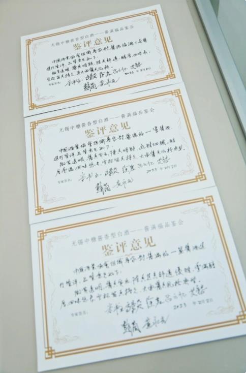 在酱满福品鉴环节,专家们通过色、香、味、格四个方面分别对喜酱、蓝酱、紫酱三款“酱满福”白酒进行了品鉴,并就口感、工艺、年份、勾调等方面对每一款酒进行了专业点评。最后形成“酱香突出,优雅细腻,酒体醇厚丰满,后味长,空杯留香持久”的产品风格评价,并为“酱满福”酒签发品鉴证书,现场专家依次签名认可。