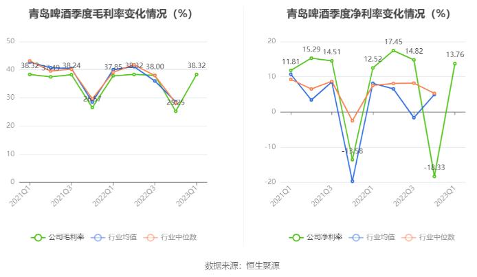 数据显示,2023年一季度,公司毛利率为38.32%,同比上升0.47个百分点,环比上升13.07个百分点;净利率为13.76%,较上年同期上升1.25个百分点,较上一季度上升32.10个百分点。