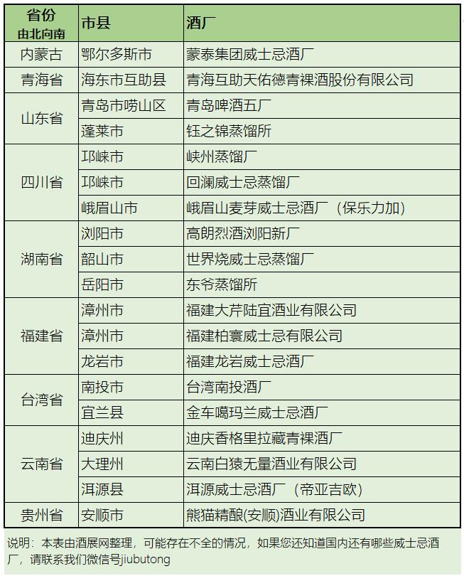 由于庞大的威士忌消费市场,没有一家威士忌酒厂愿意忽视中国。哪里有市场,在哪里设厂。近几年,国内新建了不少威士忌酒厂,有烈酒巨头保乐力加、帝亚吉欧投资的,有国内白酒厂投资,也有酒业人士联合资本投资的,截止目前,据不朽情缘网粗略统计,国内威士忌酒厂约30家。下面罗列一些: