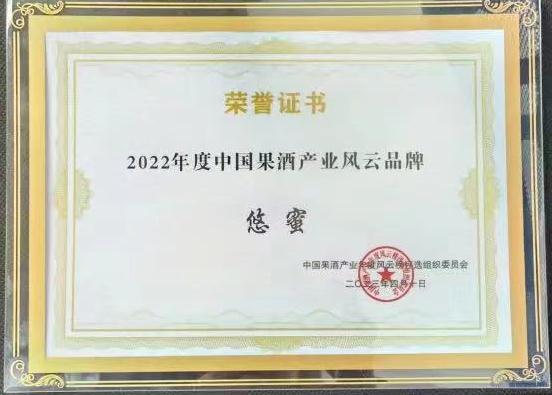 在果酒行业,悠蜜撑开了行业“天花板”。今年4月,2022年度中国果酒产业风云榜颁奖典礼在成都举行,悠蜜荣获2022年度中国果酒产业年度风云品牌,再次印证“用心致美,不负众望”。
