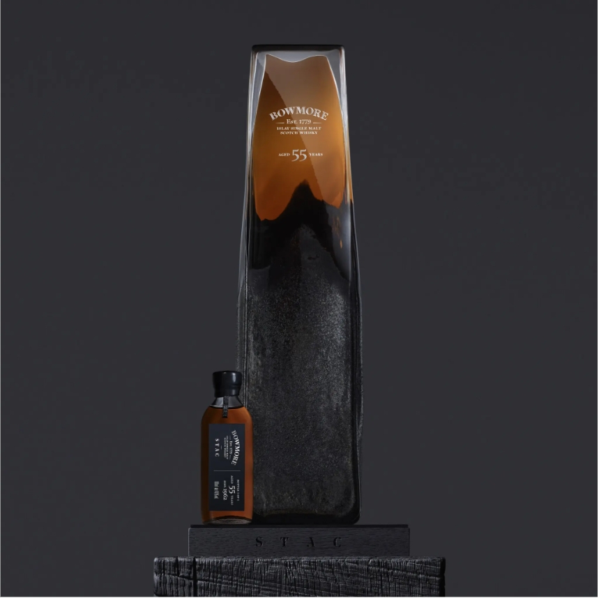 在39个拍品中,成交价最高的是蒸馏于1962年的Bowmore STAC,该酒熟成于二次填充美国橡木桶(second-fill American oak hogsheads),酒龄为55年,是波摩品牌历史上酒龄最高的酒款,酒精度数为41% ABV,容量为1.5升, 并且仅装了1瓶。这瓶酒预估成交价为30至50万英镑,最终成交价为56.25万英镑(含佣金),按现行汇率计算,约合500万元人民币,成为了全场拍卖中成交价最高的拍品。