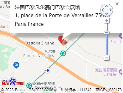 展会地点:法国巴黎,凡尔赛门展览馆,1, place de la Porte de Versailles 75015 Paris France