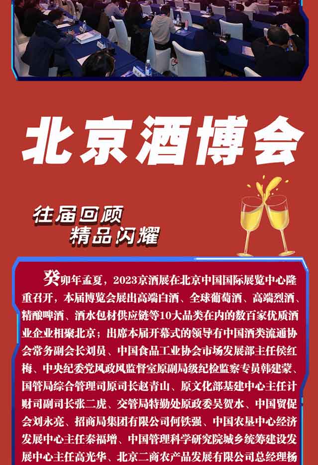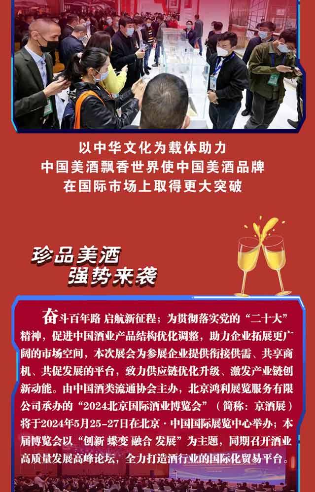 2024年以“创新·蝶变·融合·发展”为主题的北京国际酒业博览会将于2024年5月25-27日,在北京·中国国际展览中心朝阳馆(北京市朝阳区北三环东路6号)举办。
