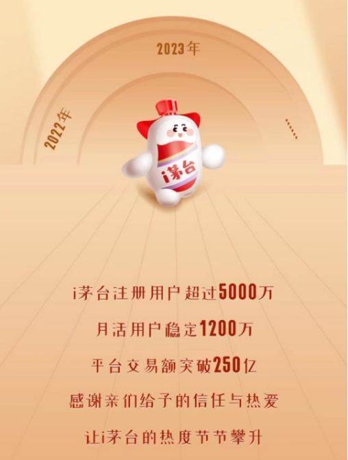 据i茅台APP消息,截至目前,i茅台注册用户超过5000万,月活用户稳定1200万,平台交易额突破250亿。
