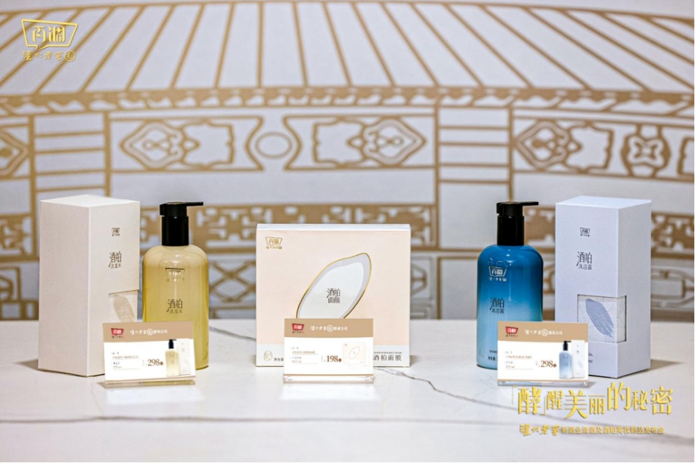这5款新品包括3款泸州老窖“百调”酒粕美妆系列产品——面膜、沐浴露和洗发水,2款“中华清酒”系列产品“云霓”和“嗔”。
