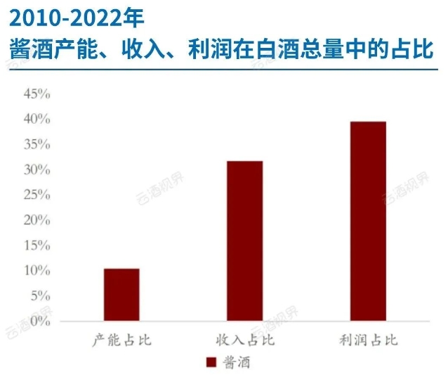 2022年,酱酒产量70万吨,收入2100亿,利润870亿。酱酒以10%的产能占比,贡献了白酒40%利润,盈利能力可见一斑。