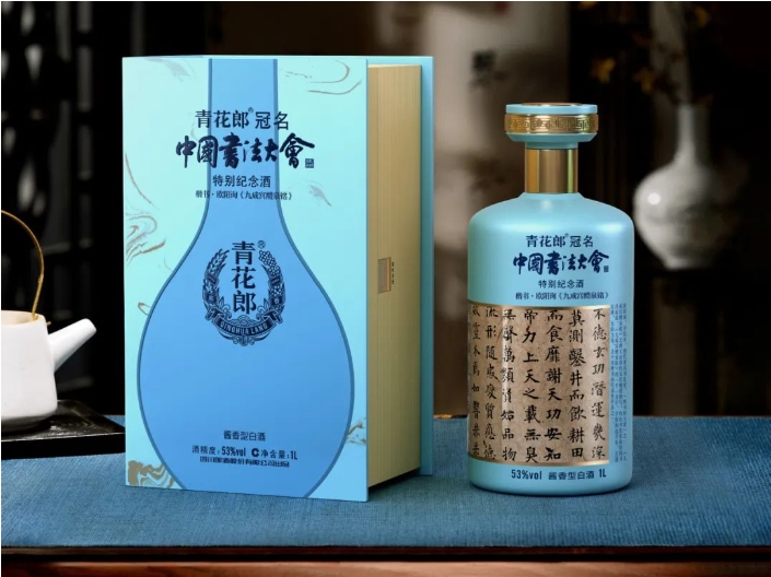 1月6日,青花郎·冠名中国书法大会纪念酒上市,限量1900套,每套含篆书、隶书、草书、行书、楷书五款产品,产品设计高雅,品质极致,具有一定艺术和收藏价值。建议零售价3009元/瓶,仅向青花郎及电商KA事业部经销商限量发售。