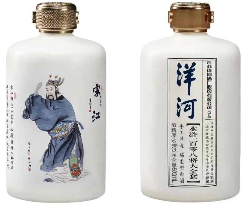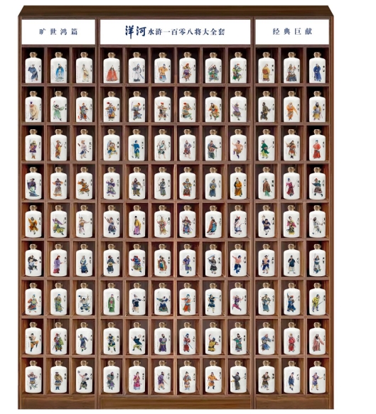 《洋河水浒一百零八将大全套》,融合名著、名酒、名工艺,集稀缺性、珍藏性、传承性于一体,为艺术收藏提供全新选项,为美好生活增色添香!该套收藏酒由一百零八个烧制着水浒人物形象的瓷质瓶装帧、每瓶含500毫升的52度白酒组成。