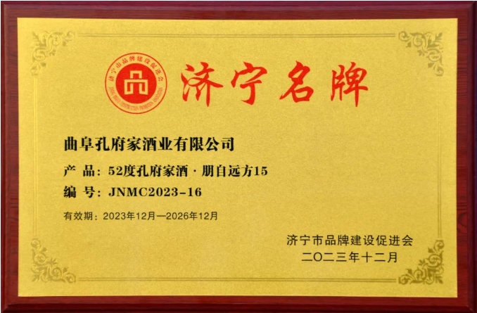 12月28日,2023年济宁品牌年会在济宁圣都国际会议中心召开。会上发布了2023年济宁名牌名单,孔府家酒·朋自远方15荣膺“济宁名牌”产品。