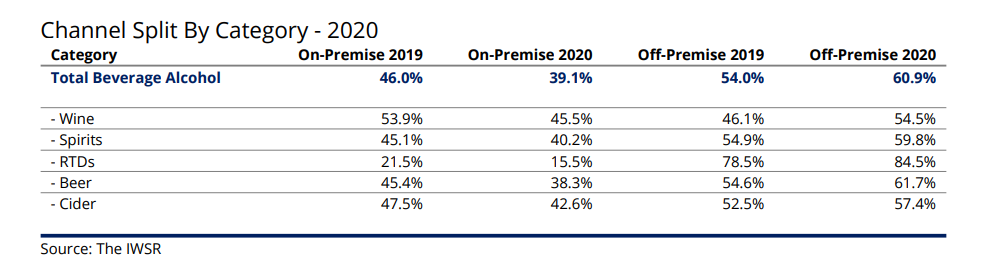 IWSR的报告显示,2020年,由于疫情,中国市场在1-3月处于“停滞期”,3月下旬开始,大部分市场开始逐步恢复正常。纵观2020年全年,虽然下半年市场恢复迅速,但所有酒类产品仍然受到了一定程度的影响。
