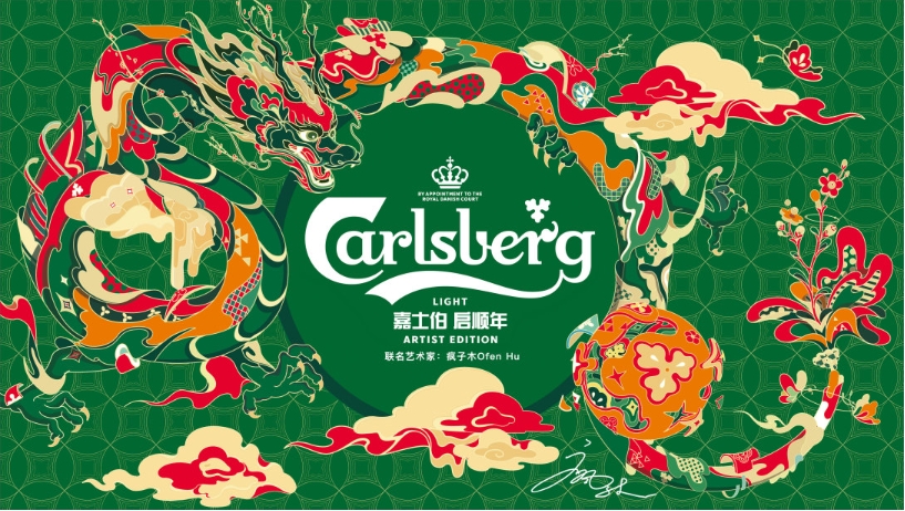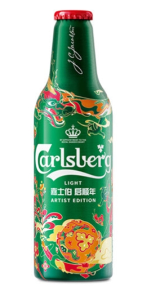 龙年新春来临之际,嘉士伯啤酒联和中国知名插画艺术家胡云峰,推出龙年启顺年新春装啤酒,分为三种款式规格:玻璃瓶、铝瓶、铝罐。