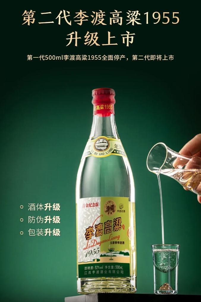 2月18日,李渡酒业发布通知,第二代500ml李渡高粱1955与1975产品已经完成重磅升级,将于2月29日正式上市。第一代500ml李渡高粱1955与1975产品已上市近十年,即日起停止生产。