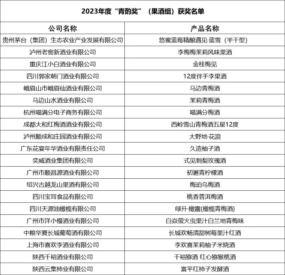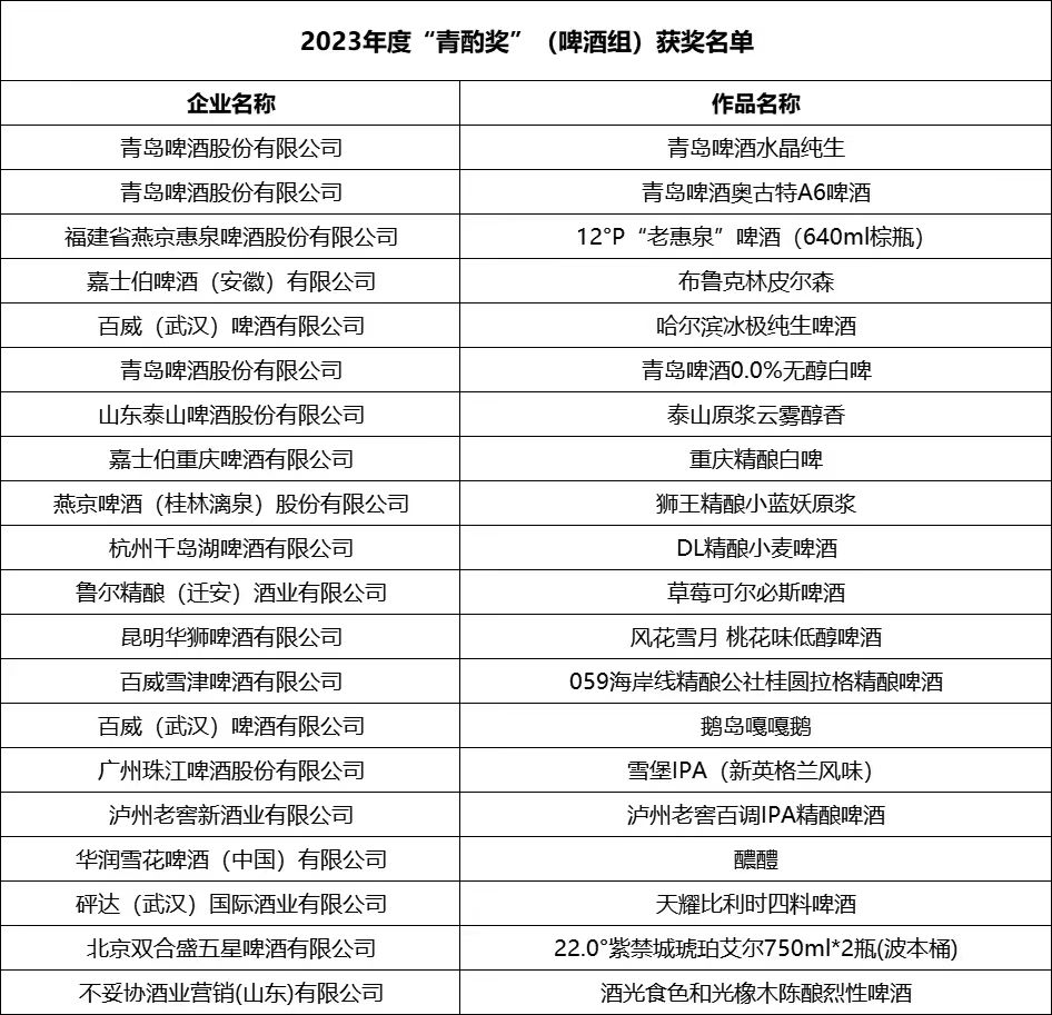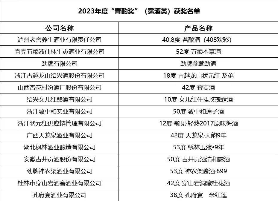 获奖名单:2023年度“青酌奖”酒类新品评选获奖名单