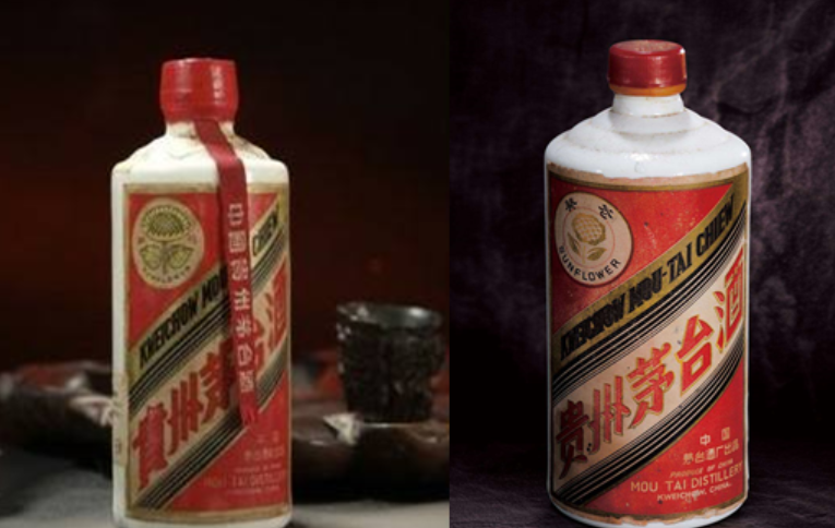 据资料显示,“葵花牌”茅台酒是茅台酒厂一个较早且短暂使用的品牌,1967年宣布正式使用“葵花牌”,到1975年停止使用,“葵花牌”仅存在9年时间,且产酒数量很少,成为稀缺的酒类投资品种。“葵花牌”商标图案分两种,开始使用的是“大叶图案”正面文字为繁体,大叶葵花存在时间极端。后来使用“小叶葵花图案”作为商标使用。由于大叶葵花极少且时间较短,被业界称为传说,但在2012年西泠印社杭州春拍中,出现一个日本老人收藏的1967年的大叶葵花茅台,最终拍出了50万元的高价。