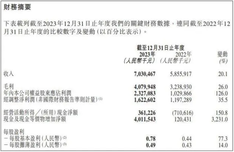 公告显示,2023年,公司亦注重经销渠道秩序,支持经销商健康发展及维持相对稳定的批发价格水平。公司的努力增强了经销商对品牌的信心,并保证经销商端的利润空间,从而在当前充满挑战的行业环境下实现收入增长及市场份额增加。