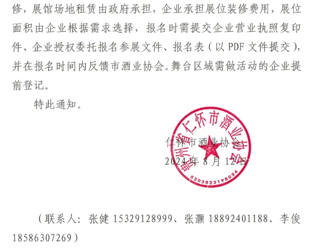 根据贵州省仁怀市酒业协会通知,第十三届中国(贵州)国际酒类博览会将于2024年9月9日-12日在贵阳市举行。由仁怀市酒业协会组织酒类企业参加本届酒博会。