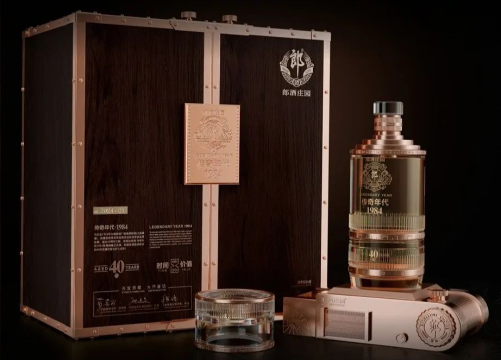 郎酒庄园传奇年代1984限量臻藏纪念酒是郎酒庄园首款超高端年份纪念酒,主体基酒精选天宝洞40年卓越陈坛酱酒,致敬郎酒1984“中国名酒”荣耀时刻,瓶型创意源自经典135相机,瓶体熔炼水晶制造镶嵌24k金属装饰,展陈底座收录郎酒1984年时光留影,箱盒甄选印度高级紫檀木手工打磨而成,匹配专属精美水晶酒具彰显顶奢地位,全球限量84瓶,首发收藏价159999元/瓶(1L),2024年12月11日起售,仅郎酒庄园原产地销售。