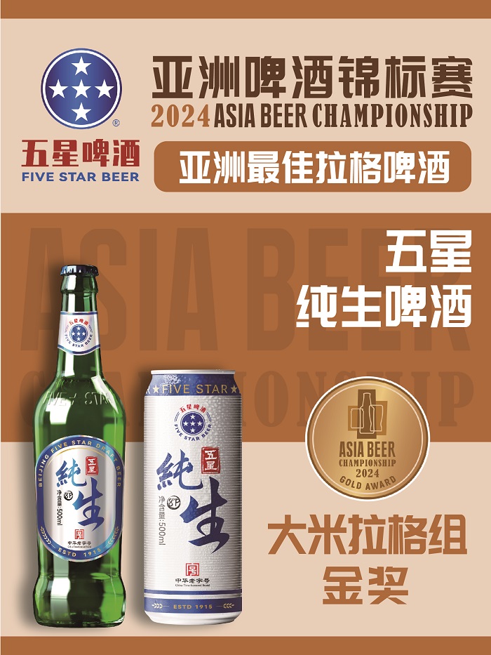“五星纯生啤酒”在大米拉格组(Rice Lager)中也摘得金奖,在与皮尔森组金奖——香港啤酒的经典产品“山顶皮尔森”、国际拉格金奖——越南最大食品饮料公司及消费零售企业马山集团(Masan Group)旗下产品“红宝石啤酒(Bia Red Ruby)”等优秀作品的角逐中,再次折桂“亚洲最佳拉格啤酒”。
