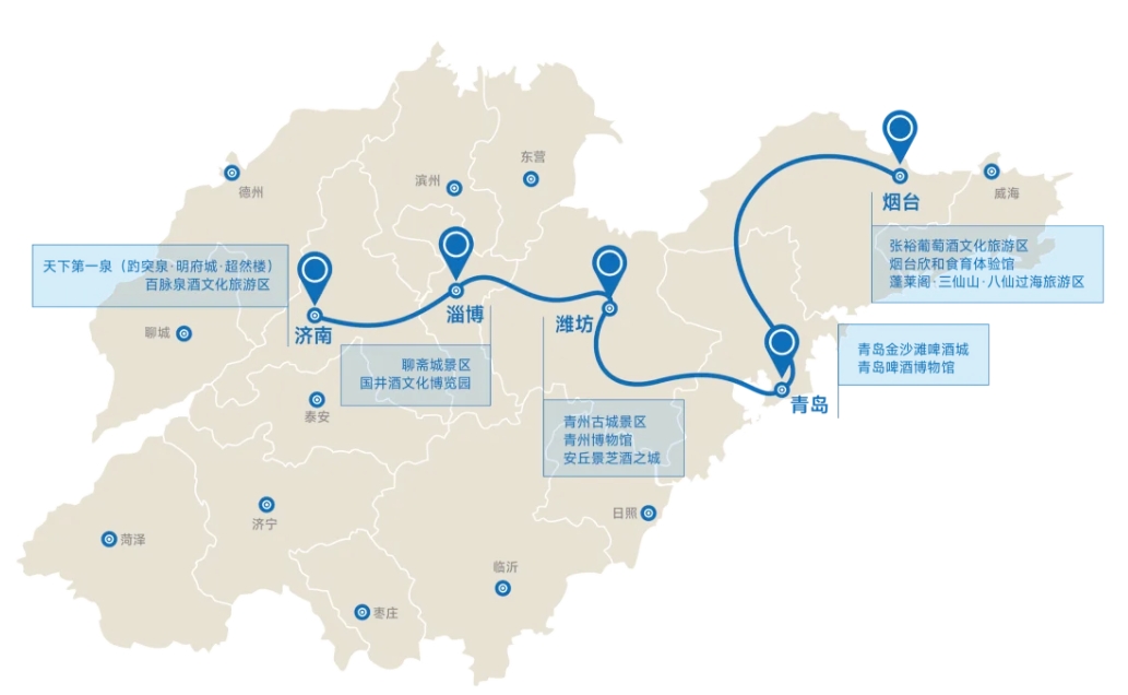11月6日,山东省工业旅游推进会在烟台召开。会上,省文化和旅游厅联合省工业和信息化厅联合推出“工业印记溯源之旅”等八大主题工业旅游精品线路。其中,诗酒年华畅游之旅规划了山东酒旅路线。