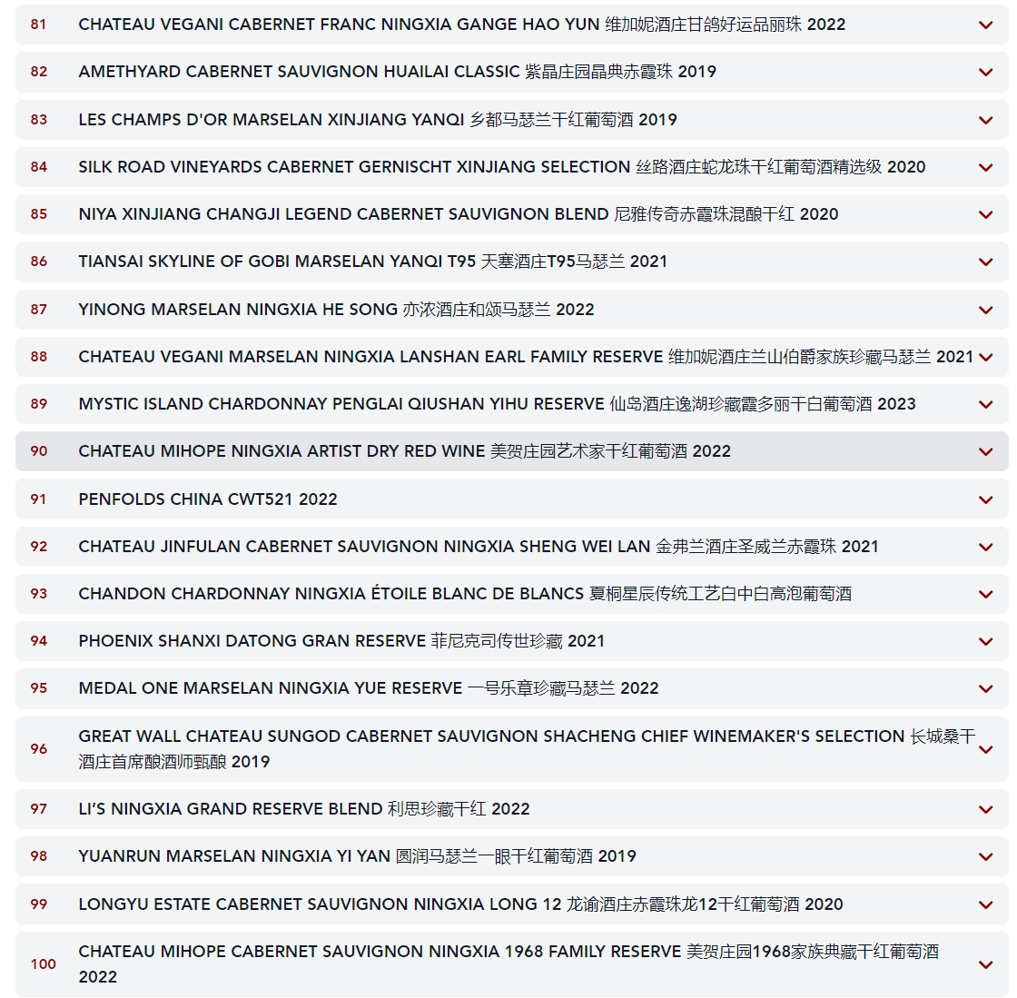 2024James Suckling中国百大葡萄酒榜单(源自jamessuckling官网):