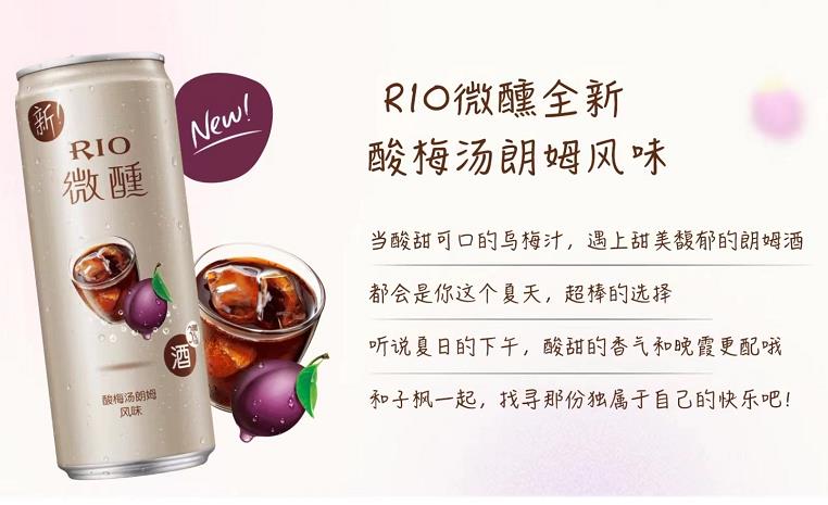 5月19日,RIO锐澳鸡尾酒发布消息称,演员张子枫已成为RIO微醺亚太区品牌代言人,并同步发布新品RIO微醺酸梅汤朗姆风味,容量为330ml,酒精度3%vol。